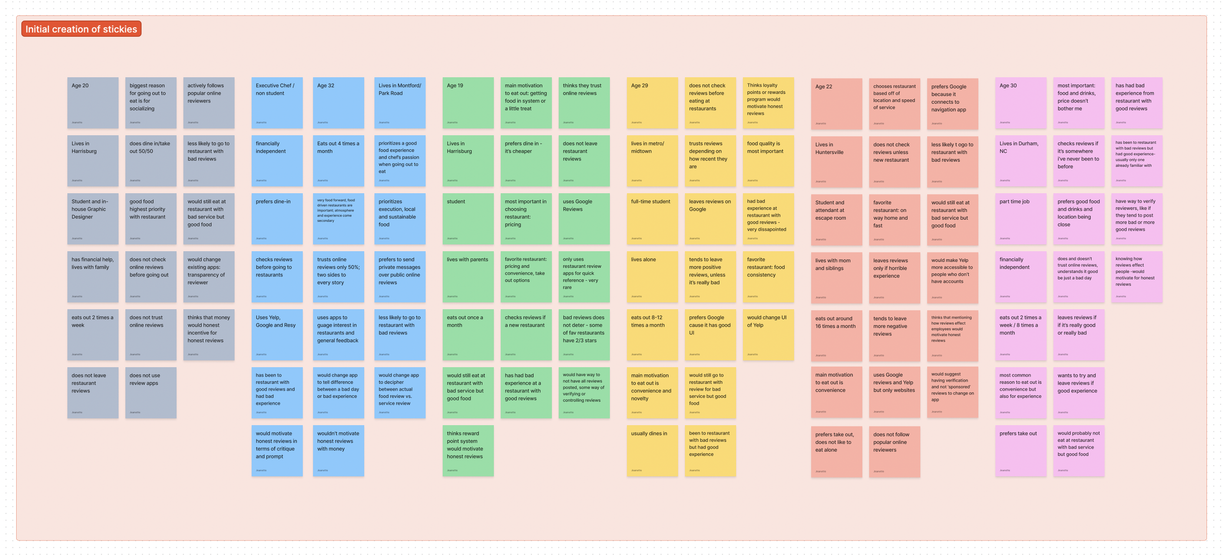User Interviews - Affinity Diagrams - Initial Creation